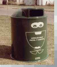 Se utilizan para recolección selectiva de residuos sólidos reciclables ( papel, cartón, vidrio, metales, plásticos, etc) , para localidades con sistema de reciclado de residuos sólidos urbanos y campañas de reciclado.Se fabrican en dos capacidades: 650lts. y 2000 lts. Son aptos para colocar en espacios públicos e instituciones y se entregan con inscripciones autoadhesivas alusivas al medio ambiente.Poseen además muy buen espacio para realizar publicidad.