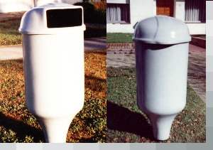 Construídos en plástico reforzado con fibra de vidrio, se utilizan en los frentes de los domicilios, reemplazando al canasto de metal,para guardar las bolsas de residuos sólidos domiciliarios, con las siguientes ventajas: se puede sacar la basura en cualquier horario, sin depender del recolector, tiene tapa, por lo que impide que los perros y roedores diseminen los residuos. Previene olores e insectos. Viene en dos capacidades redondo de 75 lts. y cuadrado de 40 lts. Terminación exterior lisa color verde o gris, con pie de caño de 2 1/4" o estructural 30x70mm.