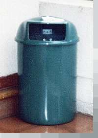 Realizados en plástico reforzado, con terminación exterior lisa en gelcoat verde, tienen una capacidad de 70 lts, son aptos para bolsa tipo consorcio. Su tapa está articulada mediante bisagra de acero cincado. Se fabrica en dos modelos; exterior, con pie de caño de 2 1/4 " e interior con fondo plano.